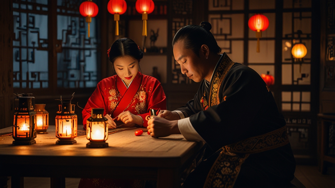 The Qixi Festival was closely tied to demonstrations of skill, particularly in weaving, embroidery, and craftsmanship. Zhinü, the weaver girl of the legend, was admired for her ability to create beautiful textiles, and her talents became a symbol of diligence, artistry, and devotion. In ancient times, women would gather during Qixi to display their needlework, thread needles under the moonlight to test their skill, and even craft small tokens meant to honor the goddess and attract blessings for love and marriage. This cultural tradition can inspire modern couples to spend their Qixi date engaging in some form of hands-on crafting together, creating something meaningful as a pair. For instance, couples might try their hand at making lanterns to light up the evening, practicing simple calligraphy strokes on parchment, or even attempting embroidery or paper cutting — all of which carry a strong sense of Chinese artistry. The act of crafting together encourages patience, teamwork, and creativity, requiring both partners to focus on the process rather than the outcome. In the end, the completed item becomes a tangible keepsake, a symbol of the time and care poured into not only the activity but also the relationship itself. Much like Zhinü’s weaving symbolized eternal love, your shared creation can embody the lasting bond you are building together.